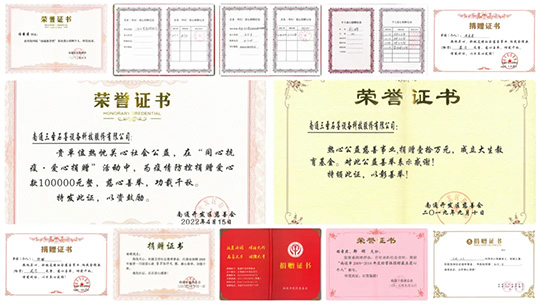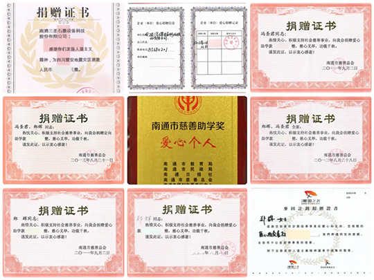 近二十年來,南通三圣企業(yè)集團通過設(shè)立專項基金、捐贈物資、組織志愿者服務(wù)、參加公益活動等多種形式,長期致力于教育助學(xué)、鄉(xiāng)村振興、應(yīng)急救援、環(huán)境保護(hù)、助老助困等領(lǐng)域發(fā)揮自己的光和熱,也曾受到政府各級的諸多表彰。