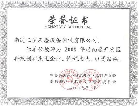 我公司被南通經(jīng)濟(jì)技術(shù)開(kāi)發(fā)區(qū)評(píng)為2008年度技術(shù)創(chuàng)新先進(jìn)單位