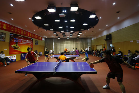 5月18日下午1點(diǎn)鐘,初夏的南通籠罩在蒙蒙細(xì)雨之中,在市供電公司的乒乓球館里,人頭攢動(dòng),人聲鼎沸,2013年南通市首屆“三圣石墨杯”企業(yè)家乒乓球邀請(qǐng)賽在這里隆重舉辦。比賽現(xiàn)場(chǎng)集聚了相當(dāng)實(shí)力的16企業(yè)乒乓球精英,更有一批通城頂級(jí)教練、陪練現(xiàn)身賽場(chǎng),組成陣容強(qiáng)大的“后援團(tuán)”,場(chǎng)面之壯觀、競(jìng)爭(zhēng)之激烈成為南通乒乓球賽史的又一新標(biāo)桿。
